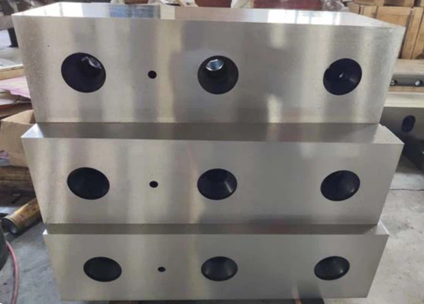 극한의 마모와 충격 조건을 견디는 특수강(1.2746 등) 소재로 제작되어 대형 스크랩 처리 장비에 완벽히 호환되는 산업용 절단 칼날입니다.